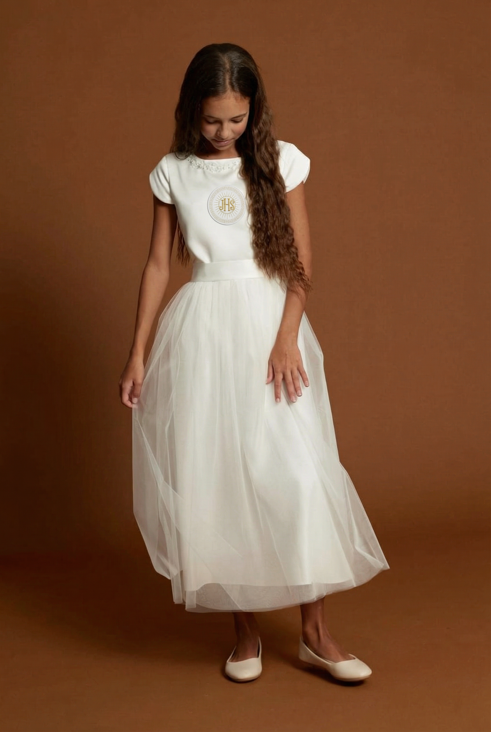There are moments in a child's life that demand nothing less than perfection, and their First Holy Communion is undoubtedly one of them. As parents, we understand the deep desire to ensure every detail reflects the sanctity and joy of this occasion. This exquisite Gold & White IHS Host Appliqué is not merely a decoration; it is a finishing touch that transforms a simple garment into a cherished keepsake.