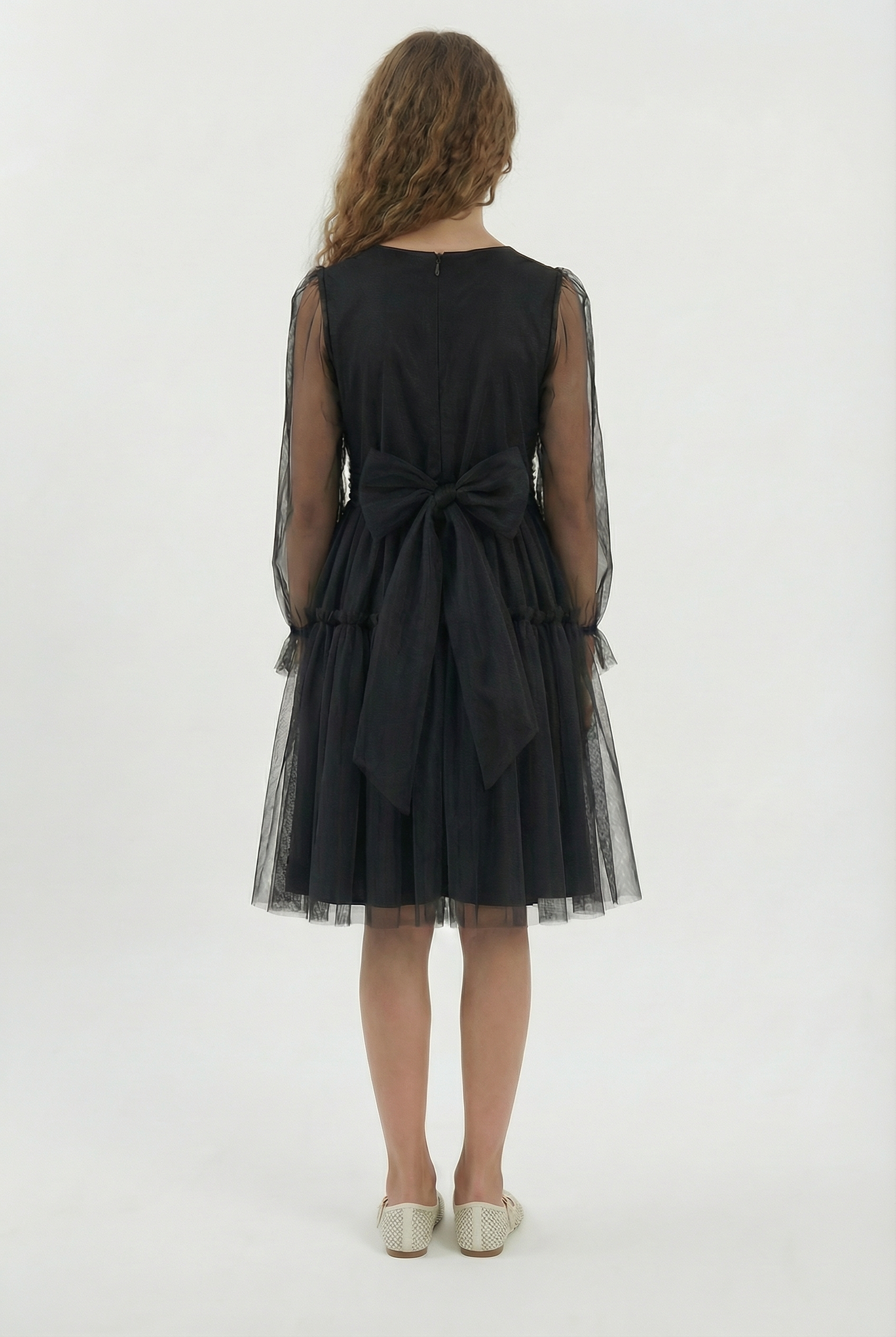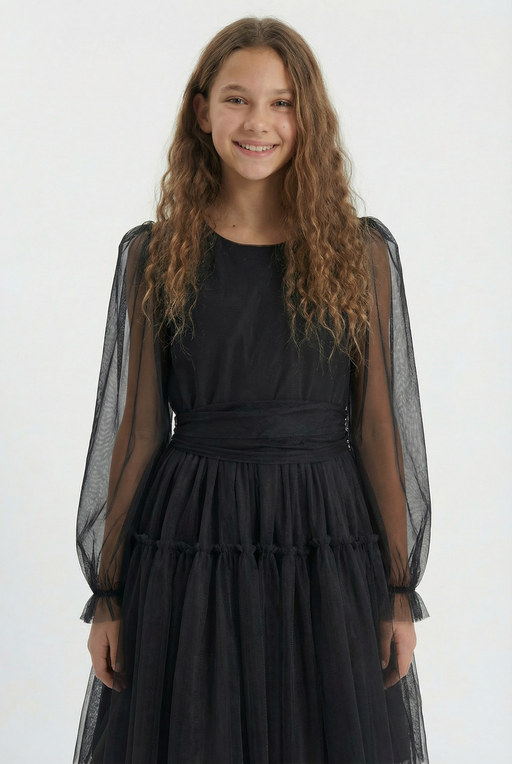 Holly Black Tulle Dress with Long Sleeves for Girls