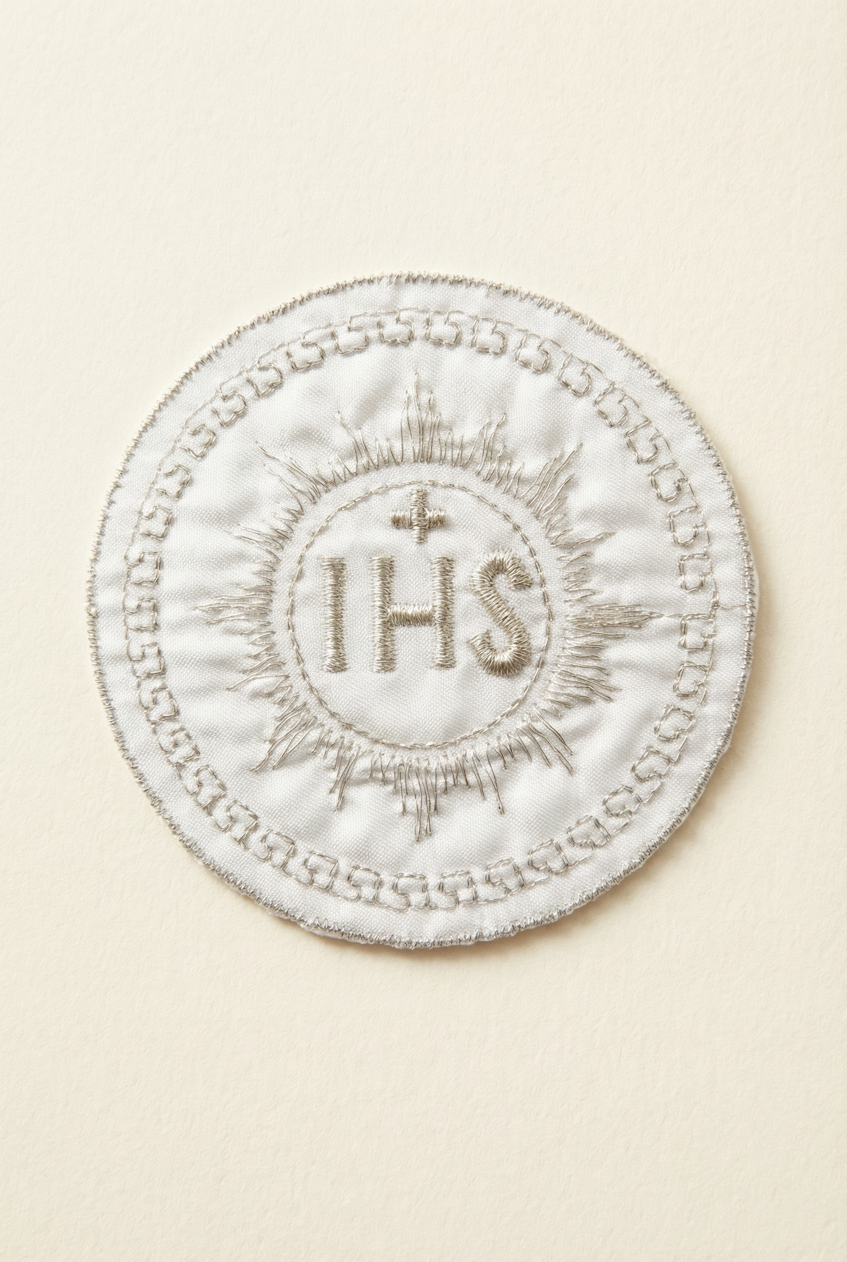 Silver IHS Host Appliqué – Elegant Communion Patch & Decoration Emblem (7 cm / 2.8 in)