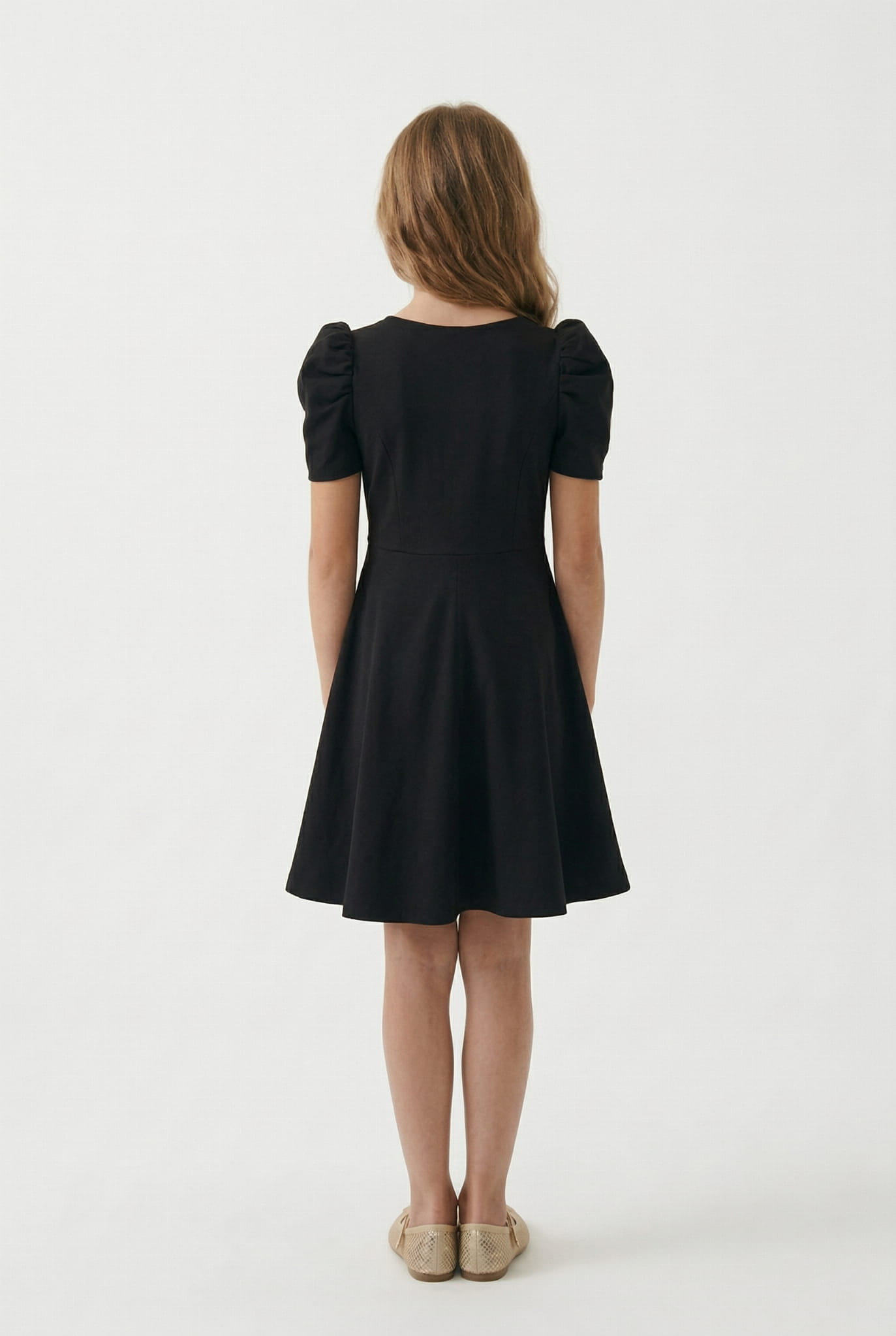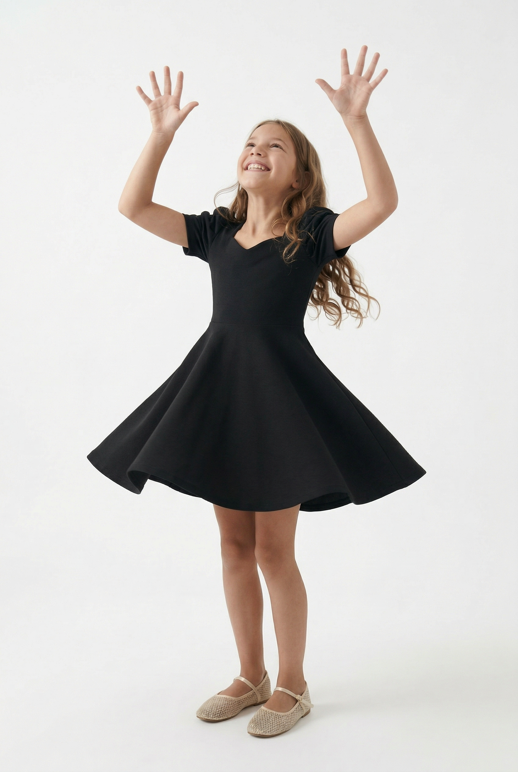 Every young lady deserves a dress that makes her feel extraordinary. The Vesper in black delivers precisely that - a sophisticated silhouette that moves with effortless grace, crafted from a stretch-comfort fabric that feels as wonderful as it looks. The elegant gathering at the waist creates a naturally flattering shape, giving your daughter the poise and confidence that comes from wearing something truly special.